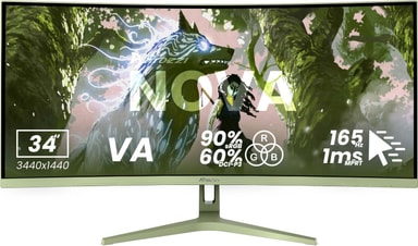 Arozzi Nova UWQHD | VA | 165 Hz | 34" gamingskjerm har 1 ms responstid, 165 Hz oppdateringsfrekvens, støtter Adaptive Sync sammen med en 34" UWQHD VA-skjerm. Den er laget for både spilling og arbeid.Les mer om produktet