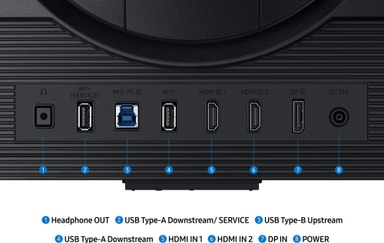 Denne skjermen tilbyr høyhastighets tilkobling med to HDMI 2.1-porter og én DisplayPort 1.4, som støtter 4K ved 180Hz. Den har også en USB 3.0-hub, en Ethernet-port og innebygd Wi-Fi og Bluetooth for sømløs strømming av smart TV-apper og trådløs tilkobling av enheter.