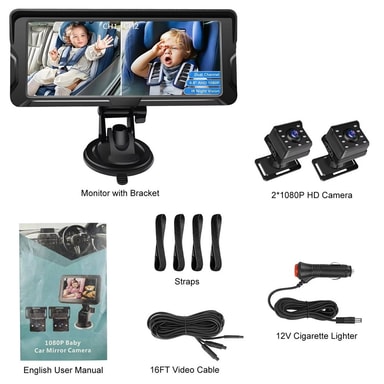 【Dobbeltkameradesign】Opplev skarp 1080P HD-oppløsning med dobbeltkameraer, som muliggjør samtidig overvåking av to barn eller forskjellige områder for fullstendig dekning av baksetet.