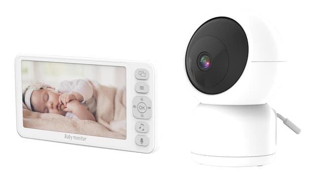 Trivision 1080p babymonitor kommer med en 5"" LCD-mottaker, 2,4 GHz WiFi, hvit