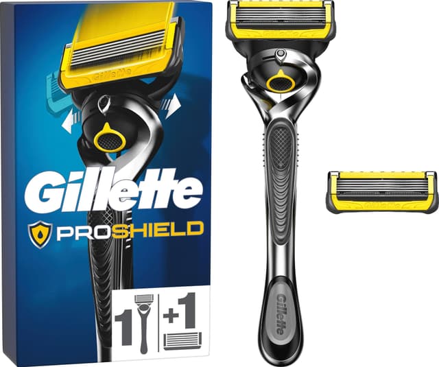 Få en jevn barbering med Gillette ProShield barberhøvel. Takket være FlexBall-teknologi følger barberhøvelen uanstrengt konturene i ansiktet ditt, og dens 5 antifriksjonsblader gir deg en nærgående barbering som varer.Les mer om produktet
