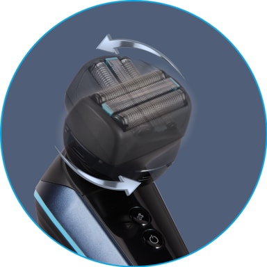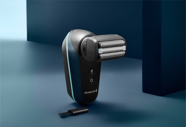 Fem fleksible barberblad tilpasser seg hodets konturer for en tett og komfortabel barbering. Et T-bladvedlegg med kammer gir presis skjeggtrimming og forming.