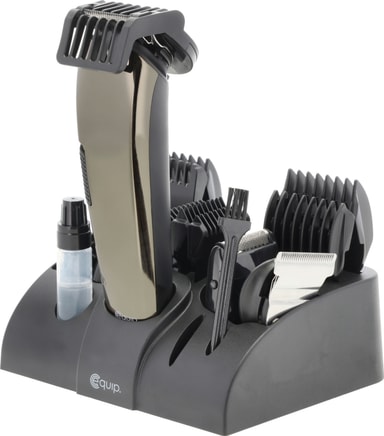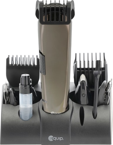Takket være praktiske og brukervennlige Equip multigroomer 72935, kan du trimme øret, nesen og håret med én enkelt enhet. Trimmeren kommer med en rekke tilbehør. Dessuten er den trådløs, oppladbar og har en brukstid på 60-80 minutter.