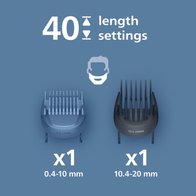 Philips 7000 Series skjeggtrimmer BT7665/15 har 40 lengdeinnstillinger, selvslipende blader, BeardSense-teknologi og en innebygd håroppsamler. Den er vanntett og kan brukes uten ledning i opptil 120 minutter for enkel og effektiv trimming.Les mer om produktet
