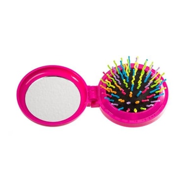 Praktisk og fargerik sammenleggbar hårbørste med speil