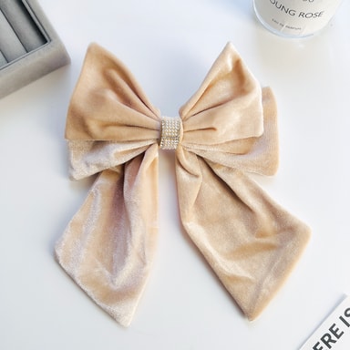 Sofistikert Stil: Hev frisyren din med denne elegante hårspennen med sløyfe. Det myke fløyelsmaterialet gir et snev av luksus, mens de glitrende rhinestone-dekorasjonene gir en subtil glans. Perfekt for å legge til en raffinert og moteriktig aksent til ethvert antrekk, enten du pynter deg for en spesiell anledning eller bare ønsker å forbedre hverdagslooken din. Denne hårspennen kombinerer uanstrengt klassisk eleganse med moderne trender.