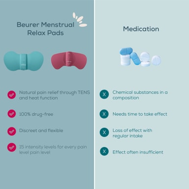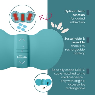Beurer Womens Life EM 55 Menstrual Relax+ tens B10059 tibyr TENS-terapi og varmes opp til 43 °C for å lindre menstruasjonssmerter og edometriose. Den har 15 intensitetsnivåer, diskret passform, og kan lades opp overalt.Les mer om produktet