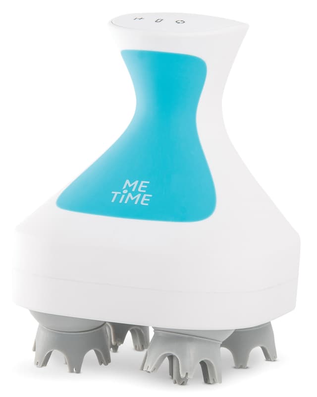Nyt avslappende hodebunnsmassasje med dette apparatet fra MeTime. Den masserer hodebunnen uten å lugge og kan brukes i dusjen.