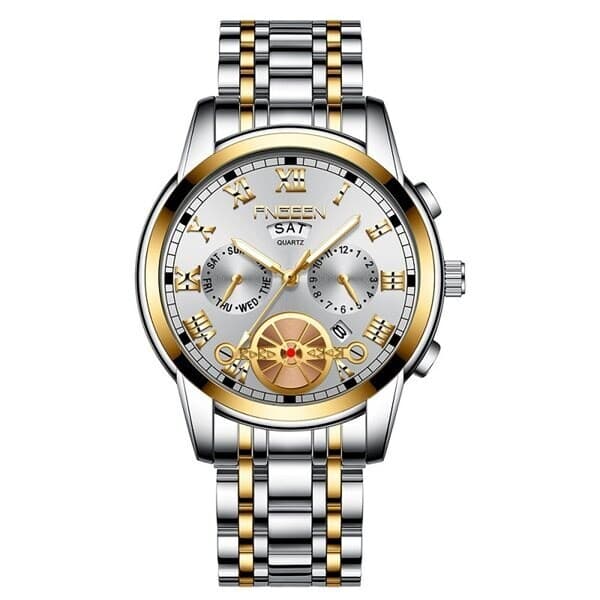 Armbåndsur med selvlysende visere - Sølvfarget armbånd med sølv/gullfarget ramme og hvit bakgrunn
