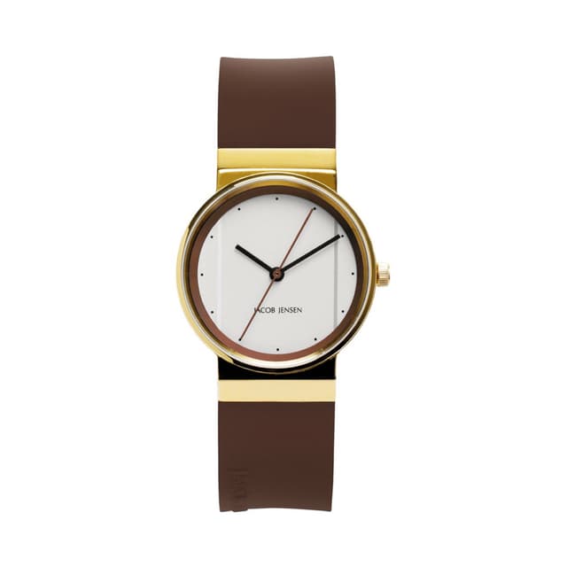 Utformingen av jacob jensen new series har blitt revidert tre ganger siden utgivelsen i 1995, noe som resulterte i noen subtile, men betydelige endringer i designen. Det indre på klokken har et vertikalt falt spor som utmerker sin tredimensjonale kvalitet. Det forsterker illusjonen av remmen som strømmer fritt rundt uret.