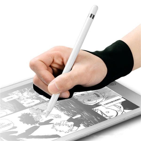 Forbedrer tegneteknikken - hanske med to fingre, utformet for dem som bruker tegneskjermer, penneskjermer eller LED-bokser og de som elsker blekktegning. Lar hånden enkelt gli over skjermen ved å eliminere friksjon og forhindre riper.