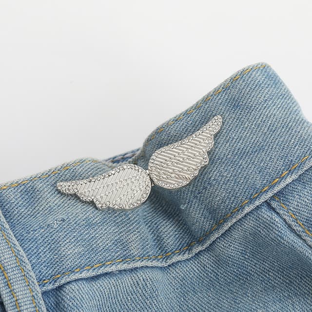 Glitrende rhinestone-design: Disse jeans-knappnålene har et vakkert vingedesign med rhinestones som gir antrekkene dine et snev av glamour og glitter. Gullfinishen kompletterer rhinestones og skaper et elegant og iøynefallende tilbehør.