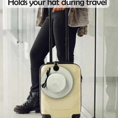 På reise kan klipsen brukes til å feste hatten til en veske, koffert eller jakke. Når du vil bruke en lue, trenger du ikke å åpne vesken eller kofferten for å finne hatten din, perfekt for fotturer og reiser.