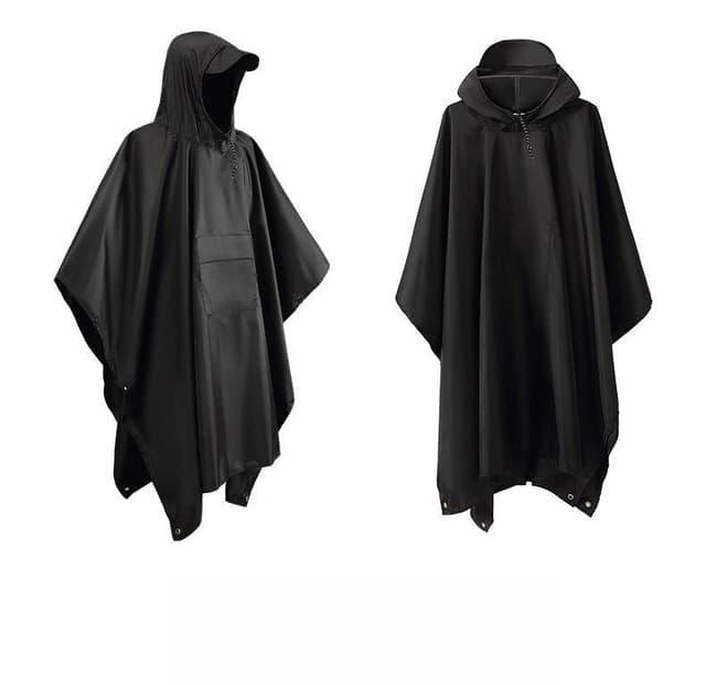 • Multifunksjonell regnponcho / vanntett presenning / matte Sort