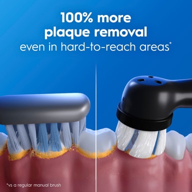 Den elektriske tannbørsten har et rundt børstehode som når områder som rektangulære børster ikke kan nå, for en dypere rengjøring.