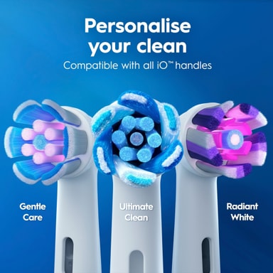 Opplev Oral-Bs mest avanserte iO-teknologi for en effektiv tannpuss og en behagelig børsteopplevelse. Børsten er skånsom mot tannkjøttet, stillegående under bruk og minner deg om å bytte børstehode hver tredje måned - som tannleger anbefaler.