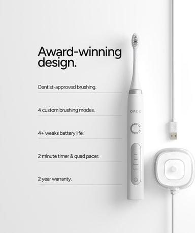 Ordo Sonic+ elektrisk tannbørste 32372gir smilet ditt et løft med 40 000 soniske pulser og fire børstemoduser for en dyp rengjøring. Den elektriske tannbørsten er designet for voksne, lades på bare 120 minutter, og kommer med innebygd timer og display.