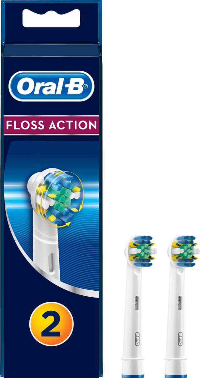 Oral-B FlossAction børstehode gir renere tenner og sunnere munnhygiene sammenlignet med vanlige manuelle tannbørster. En indikator vil varsle deg når det er på tide å bytte børstehode. Tannbørsten omgir hver tann for en mer dyptgående rengjøring. Er formet som en kopp for effektiv fjerning av plakk og massering langs tannkjøttet.