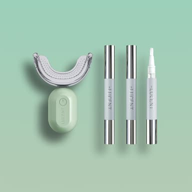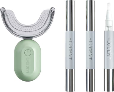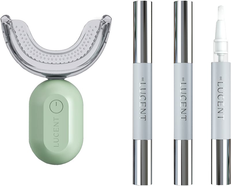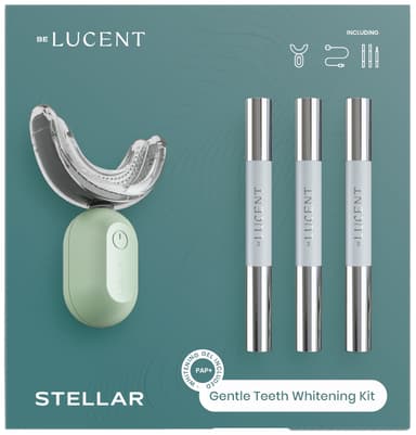 Be Lucent Stellar startsett for tannbleking 870003 bruker PAP+ gel og blårødt lys. Den styrker emaljen med hydroksyapatitt og gir en 8 til 12 dagers behandling. Påfyllingspakker er tilgjengelige for utvidet bruk.Les mer om produktet