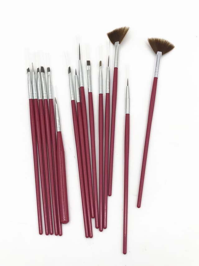 Neglebørster med myk nylonbust og plasthåndtak. Veldig fleksibel å male med og behagelig å holde i. Du kan bruke disse børstene til å lage vakre design på neglene, som virvler, blomster, linjer og mer. Settet inneholder en mengde forskjellige typer børster for alle behov.