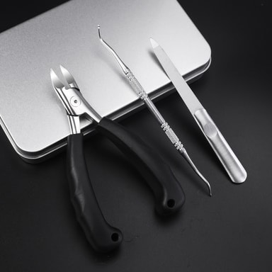Allsidig og multifunksjonell: Dette settet inneholder en tåneglfil, en neglebåndsskyver og en neglklipper. Disse dekker en rekke neglepleiebehov for både fingernegler og tånegler.
