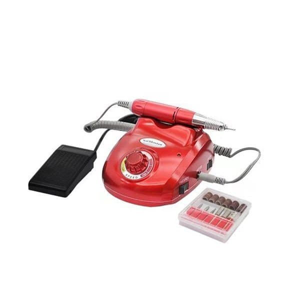 Elektrisk neglesliper komplett med slipehylser og slipestifter i forskjellige dimensjoner. Slank modell som er dobbelt så kompakt som en standard neglesliper. Stabil konstruksjon gode justeringsmuligheter på turtall osv. Neglesliper som kan brukes til både hender og føtter. Passer til både høyre og venstre hånd. Har en fotpedal som gjør jobben lettere.