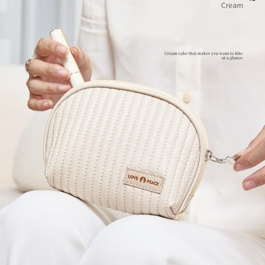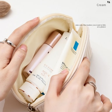 Vanntett og premium: Denne sminkevesken er laget av høykvalitets PU-skinn, som sikrer lang levetid og motstand mot vannskader. Du kan trygt bære kosmetikken uten å bekymre deg for søl eller sprut.