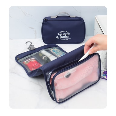 • Reiseveske med stor kapasitet, sminkeveske, kosmetikkveske med våt-tørr separasjon Mørke blå