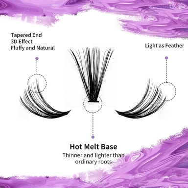 Våre vippeklynger er designet for å skape et flatere og mer naturlig utseende når de blandes med dine egne vipper. Tilpass stilen din med forskjellige lengder for effekter som en kattøyne, naturlig eller fluffy look. Nyt bekvemmeligheten av å lage fantastiske vipper hjemme med vårt vippeforlengelsessett.