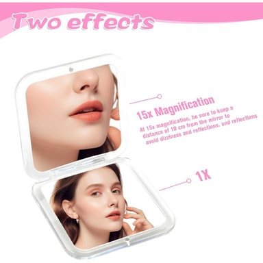 Kraftig 20X forstørrelse: Oppnå feilfri sminkeapplikasjon med 20X forstørrelse av dette kompakte speilet. Perfekt for detaljert arbeid som pinsett, påføring av eyeliner eller perfeksjonering av leppestiften din. Den høye forstørrelsen sikrer at du ikke går glipp av en eneste detalj, noe som gir en profesjonell finish hver gang. Enten du er hjemme eller på farten, er dette forstørrelsesspeilet ditt hemmelige våpen for et polert utseende. Ideell for personer med synshemninger eller de som krever nøyaktig sminkeapplikasjon.