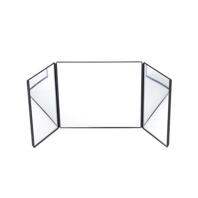 Justerbar seeropplevelse: Tri-fold-designet på dette speilet muliggjør en svært tilpassbar seeropplevelse, slik at brukerne kan justere panelene til ønsket vinkel. Denne justerbarheten er spesielt gunstig i biler der plassen kan være begrenset eller lysforholdene varierer. Den sammenleggbare designen gir kompakt lagring når den ikke er i bruk, og forhindrer hindring av førerens syn. Dette bærbare bilspeilet har solide hengsler for å sikre stabilitet og forhindre utilsiktet kollaps under bruk. Dette kosmetiske speilet for kjøretøy er et praktisk tillegg til enhver bil, og tilbyr uovertruffen bekvemmelighet og justerbarhet.