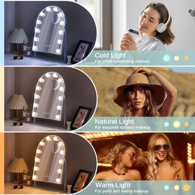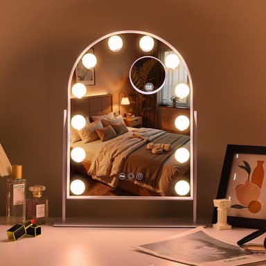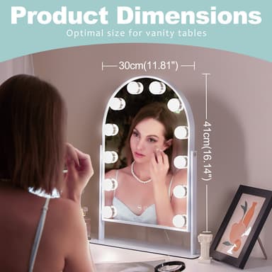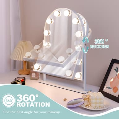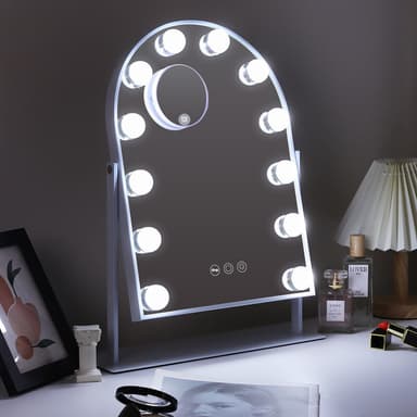 VANITII Buet sminkespeil med lys metall bordmontering hvitt 30x41 cm