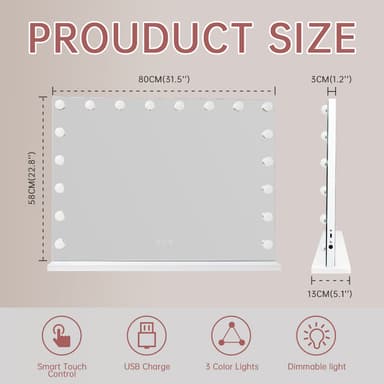 VANITII Hollywood skjønnhetsspeil med lys bordmontering veggmontering 80x58 cm