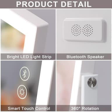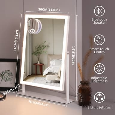 VANITII LED sminkespeil med lys Bluetooth metall hvitt 30x41 cm