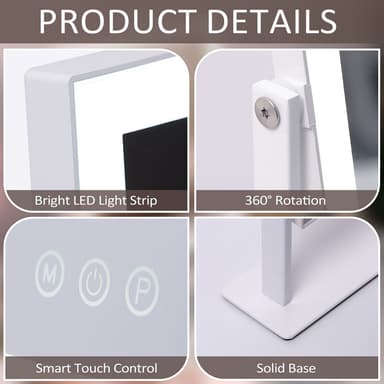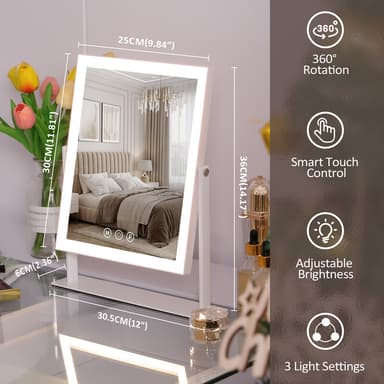VANITII Sminkespeil med lys bordmontering metall hvitt 25x30 cm