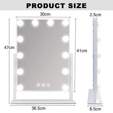 VANITII Sminkespeil med lys metall benkmontering hvit 30x41 cm