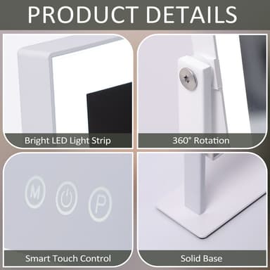 VANITII Sminkespeil med lys metall bordmontering hvitt 30x41 cm