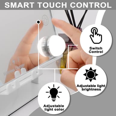 VANITII Toalettspeil med lys Bluetooth trådlading bord metall hvit 25x30 cm