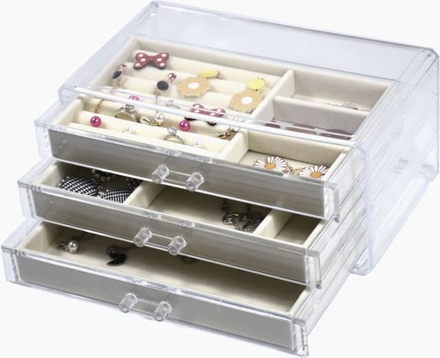 Design med tre skuffer: Smykkeskrinet er utstyrt med tre skuffer, som gir flere lag for organisert oppbevaring av dine dyrebare smykker.