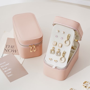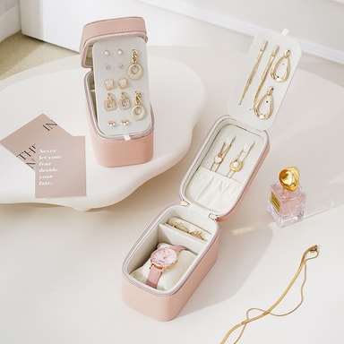 • Kompakt smykkeskrin for ringer, øredobber og halskjeder Rosa
