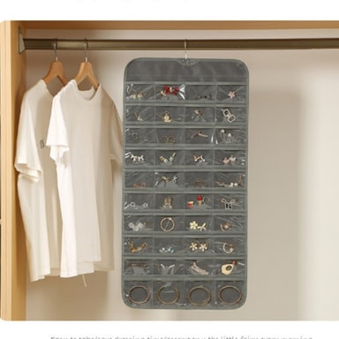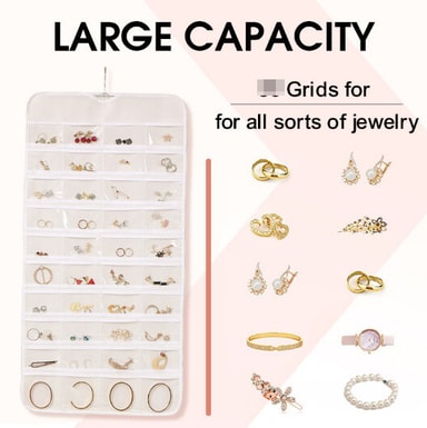 Organisert smykkeoppbevaring: Hold dine dyrebare smykker pent organisert og lett tilgjengelig med denne oppbevaringsposen med 48 rom. Ikke flere sammenfiltrede halskjeder eller manglende øredobber! Hvert rom gir en dedikert plass for dine ringer, øredobber, halskjeder, armbånd og annet lite tilbehør, og forhindrer riper og skader. Det klare PVC-vinduet lar deg raskt se og velge smykkene du vil bruke, og sparer deg for tid og krefter.