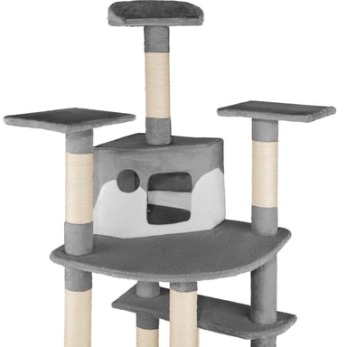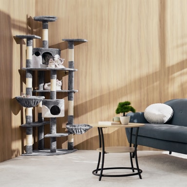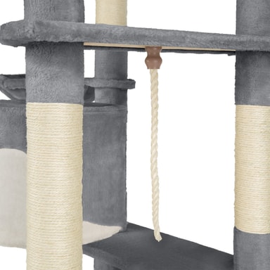 Dette kattetreet er en drøm som går i oppfyllelse for katter i alle aldre. Det fantastiske kattetreet inneholder en rekke skrapestolper som danner strukturen til kattetreet, og kombinerer plattformer, hengende leker, hengekøyer og til og med små kattehus. Alle kattungens eller kattens naturlige instinkter vil bli tilfredsstilt på dette omfattende aktivitetssenteret, mens de klatrer, hopper, kaster seg og leker, før de trekker seg tilbake til et av de koselige husene for en kattelur. Katter er naturlig nysgjerrige, så de høye utsiktsplattformene, hvorav den høyeste er på over 2 meter, bidrar til å tilfredsstille dette ved å gi dem en oversikt over hele rommet. I tillegg, takket være de mange skrapestolpene for katter, vil møblene dine forbli uplettede når det spinnende kjæledyret ditt finner sitt nye favorittskrapested. Enten for en enkelt katt eller kattunge eller en hel stolthet av kjæledyr, vil dette store kattetreet fra tectake gi enda mer berikelse til livene deres.