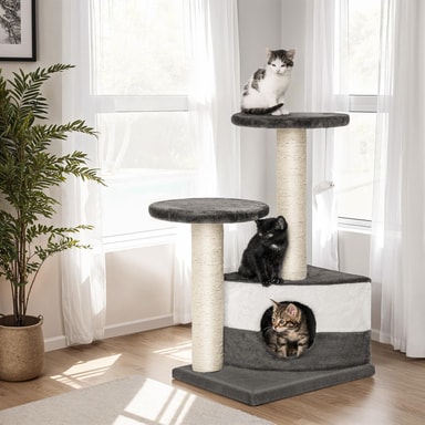 Et klorestativ er et flott høydepunkt for enhver katt eller kattunge, som bare blir bedre når du inkluderer et koselig gjemmested, utkikksplattformer og en museleke, og gjør den om til et episk kattetre! Med et kattetre kan katter slipe klørne optimalt mens møblene dine forblir urørt. Kattetrær integrerer standard skrapestolper med gjemmesteder å sove i, leker å leke med og plattformer å slappe av på og hoppe fra. Katter er nysgjerrige dyr som elsker å kartlegge omgivelsene sine, og observasjonsdekkene gir kjæledyret ditt det perfekte stedet å gjøre dette. Katter er også veldig nære sine ville slektninger, så en berikende lekeplass er perfekt for å uttrykke deres naturlige instinkter. Få dette Tommy kattetreet fra tectake, kattene dine vil elske det, og det vil også gi dem mye aktivitet!