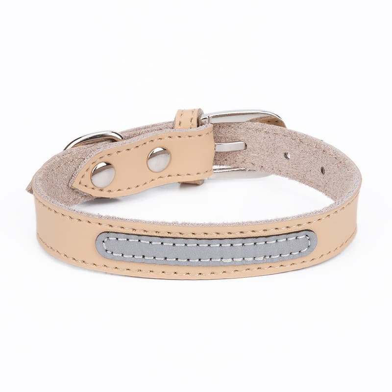 Ekte skinn: Laget av ekte skinn av høy kvalitet, er denne kragen ikke bare stilig, men også myk og behagelig mot kjæledyrets hals, noe som gjør den perfekt for langvarig bruk.