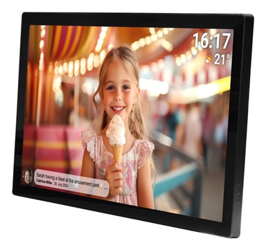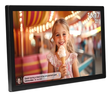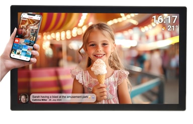 Gjenopplev minnene dine på en 31,5’’ Full HD IPS berøringsskjerm med fantastisk fargegjengivelse og klarhet. Med 32 GB innebygd lagring kan du lagre tusenvis av bilder direkte på din FRAMEO fotoramme. Del bilder og videoer trådløst fra smarttelefonen din og skap en privat delingsopplevelse med familie og venner. Den brukervennlige berøringsskjermen gir deg full kontroll over visning, venner og tidsinnstillinger.
