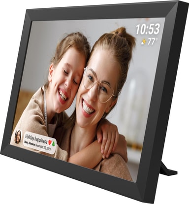 Sandstrøm Frameo digital fotoramme har en 15,6" Full HD IPS-berøringsskjerm for klare bilder med gode synsvinkler. Med 32 GB intern lagringsplass, WiFi for ekstern deling av bilder/videoer via Frameo-appen og automatisk rotasjon for vegg eller bord.Les mer om produktet