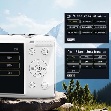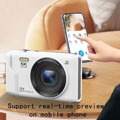 5K Ultra HD-video: Ta opp videoer i imponerende 5K Ultra HD-oppløsning med denne kompakte digitalkameraet. Denne funksjonen lar deg lage videoer med eksepsjonell klarhet og detaljrikdom, perfekt for å bevare dine dyrebare minner i høyeste kvalitet. Enten du filmer familiebegivenheter, reiser eller kreative prosjekter, vil 5K-videoopptakene dine se fantastiske ut på enhver skjerm. Kameraet er utstyrt med avansert videostabiliseringsteknologi som sikrer jevne og stabile opptak, selv når du er i bevegelse. Med 5K-video kan du fange hvert øyeblikk med utrolig realisme og detaljer, og skape minner som varer livet ut.