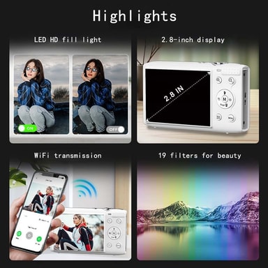 Kompakt og bærbar: Ta med deg dette kompakte digitalkameraet overalt. Den lette og kompakte designen gjør det enkelt å bære i lommen eller vesken, slik at du alltid er klar til å fange øyeblikket. Enten du er på reise, på en familieutflukt eller bare ute og går, er dette kameraet den perfekte følgesvennen. Den kompakte størrelsen betyr ikke at du må ofre kvalitet dette kameraet leverer imponerende bilder og videoer i en praktisk og bærbar pakke. Med dette kameraet kan du enkelt fange alle de spesielle øyeblikkene i livet ditt, uansett hvor du er.