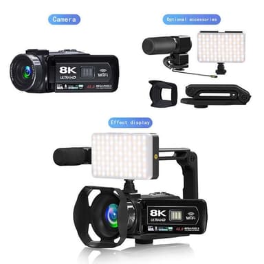 Dette 8K håndholdte digitalkameraet er utstyrt med en rekke funksjoner som gjør det til et allsidig verktøy for alle dine fotografiske behov. Det innebygde LED-lyset gir deg muligheten til å ta klare og lyse bilder selv i dårlige lysforhold. Berøringsskjermen på 3.0 tommer gir enkel og intuitiv navigering gjennom menyene og innstillingene. Med 18X digital zoom kan du komme tett på motivet uten å miste bildekvalitet. 2.4G fjernkontrollen gir deg full kontroll over kameraet fra avstand, noe som er ideelt for selvportretter og gruppebilder. Kameraet støtter også WiFi, slik at du enkelt kan overføre bilder og videoer til dine enheter og dele dem med venner og familie. Medfølgende 1500mAh batteri gir deg lang brukstid, slik at du kan fokusere på å fange de perfekte øyeblikkene.