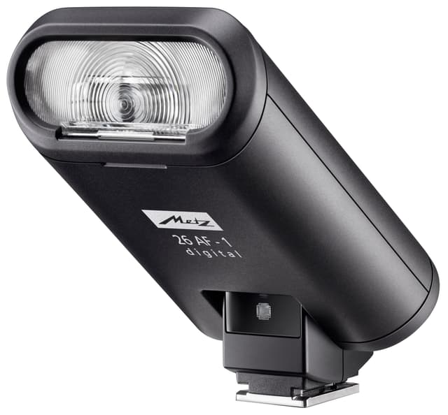 Metz Mecablitz 26 AF-1 digital blits kommer med nytt raskt låsesystem for basen som er designet for Canon digitalkameraer med ISO 518 tilbehørssko. Reflektoren kan roteres 90 grader vertikalt for aktivering av både direkte og indirekte blits. Med maksimalt ledetall på 26 for ISO 100/21 DIN har blitsen høyere ytelse enn en integrert kamerablits. Kompakt design gjør det enkelt å ta med blitsen på reise.
